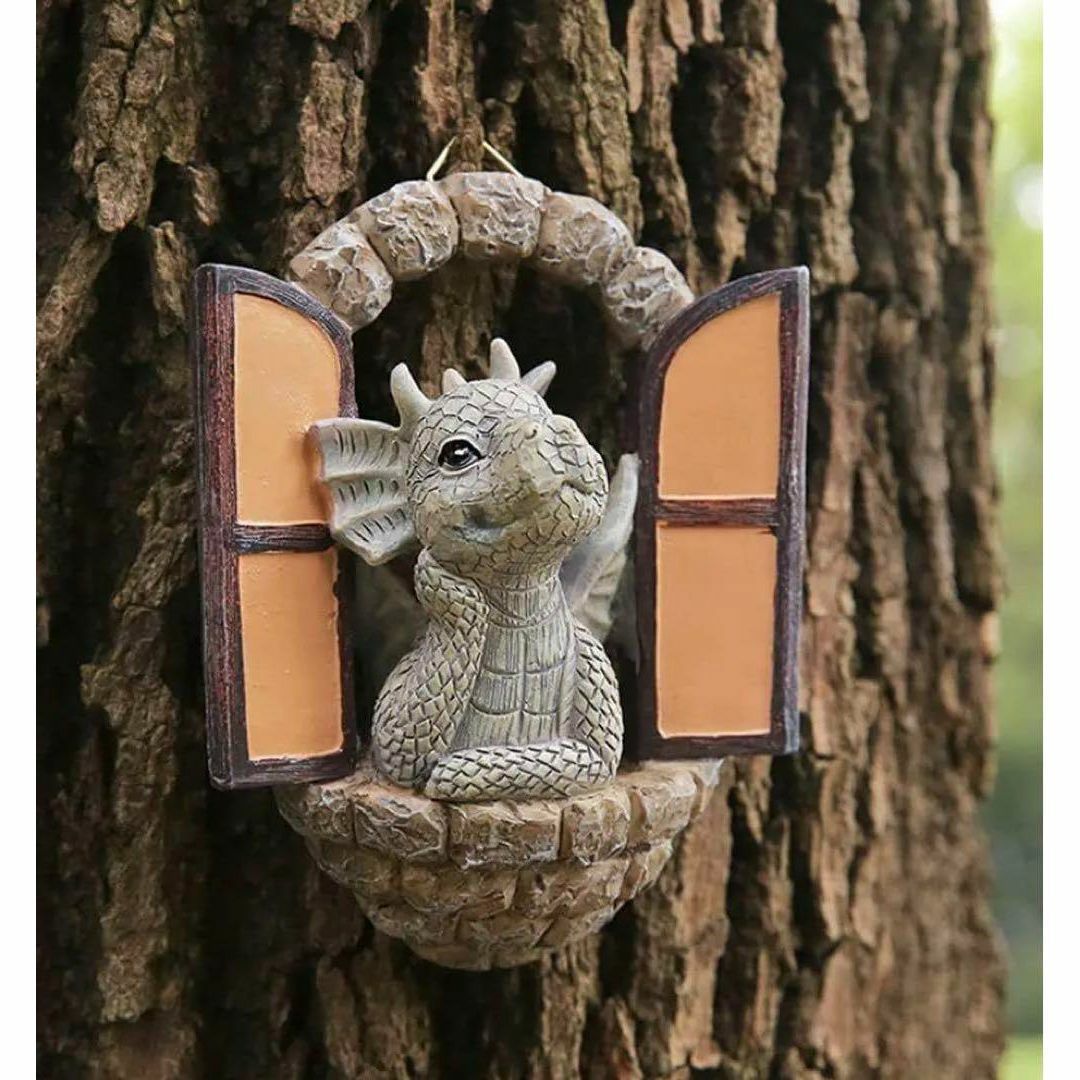- 愛らしいリトルドラゴン 壁掛け ガーデニング オブジェ 置物 ガーデンオーナメント 龍 ウッド インテリア ツリー ウッド かわいい 御伽の国