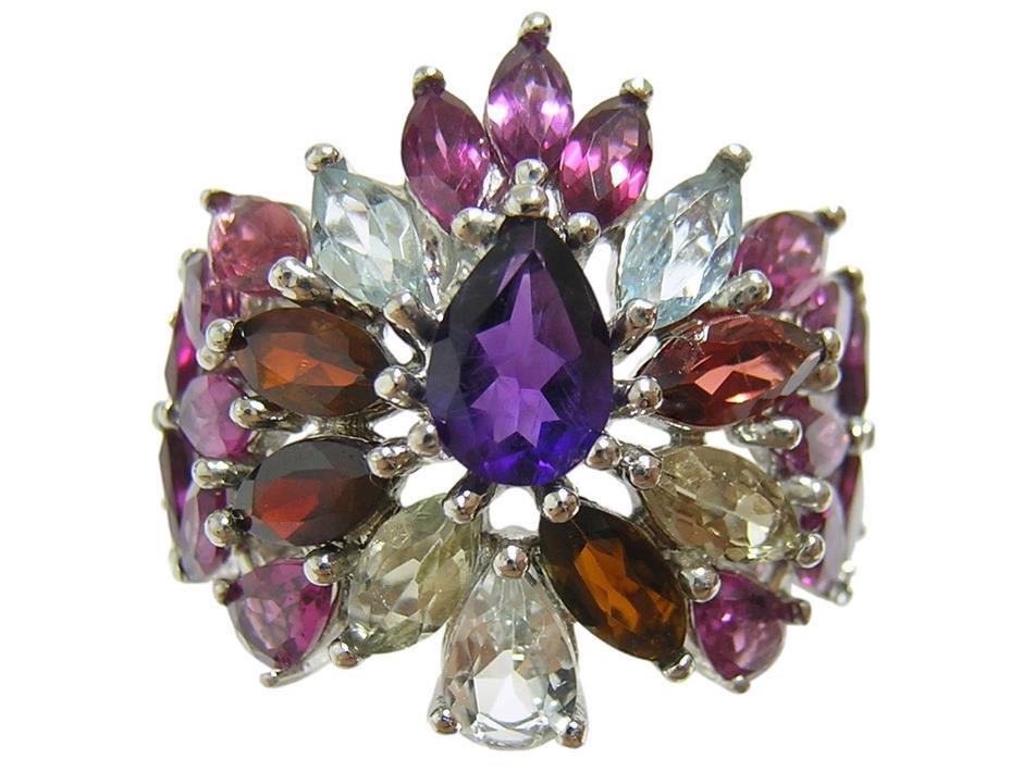 - 『天然アメジスト』 デザインリング 指輪 アクアマリン ロードライトガーネット トリマリン