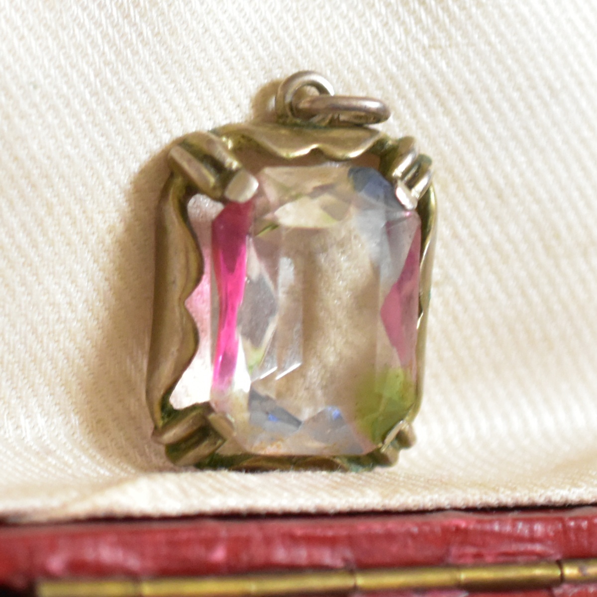 - ドイツ製アンティーク Silver835/シルバー/銀製 ピンクの強いアイリスガラスのペンダントトップ/チャーム アールデコ 本物保証