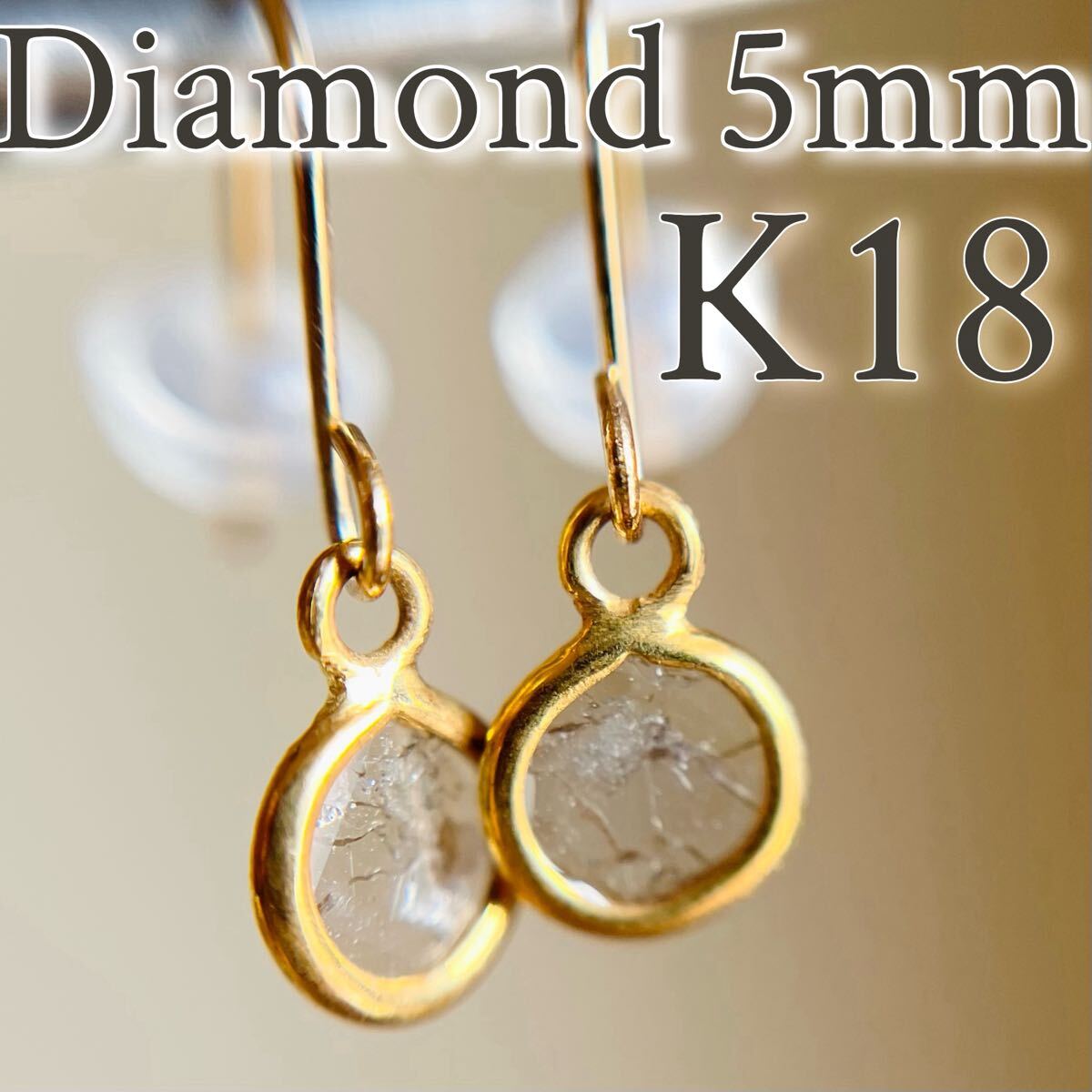 - K18YG 天然ダイヤモンド スライスダイヤモンド フックピアス diamond