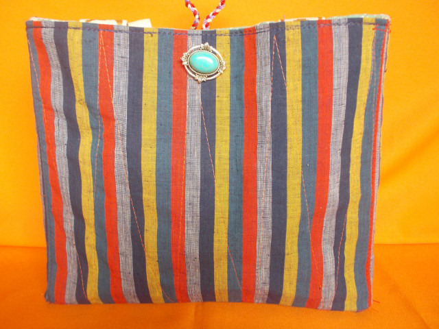 - [636]古木綿★ごじょう紬★5色縦ライン★横33cmX縦28㎝★A-4サイズ収納★ハンドメイド★