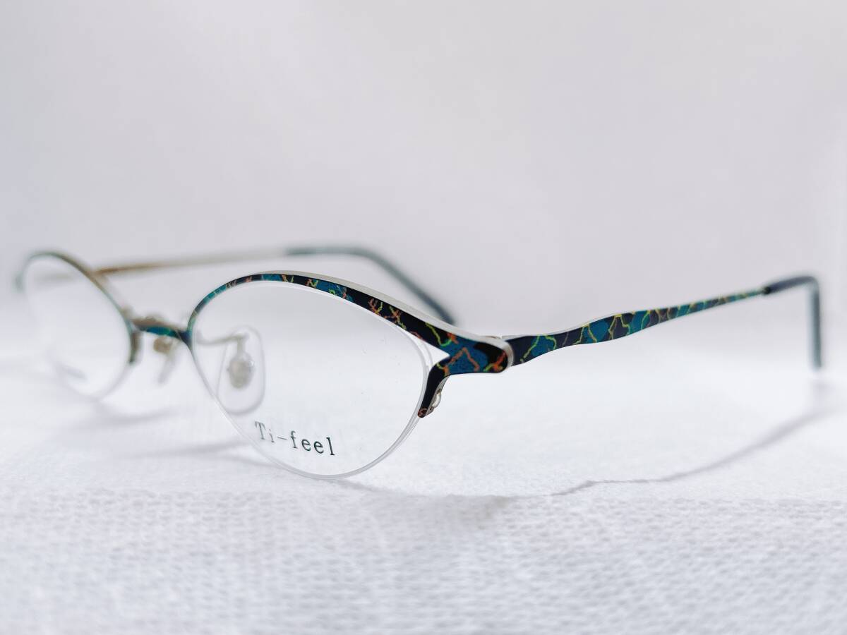 - C-3 新品 メガネフレーム Ti-feel 日本製 国産 ハーフ オーバル 46□21 140 12g チタン 軽量 シンプル オシャレ 眼鏡 女性 未使用 ブランド