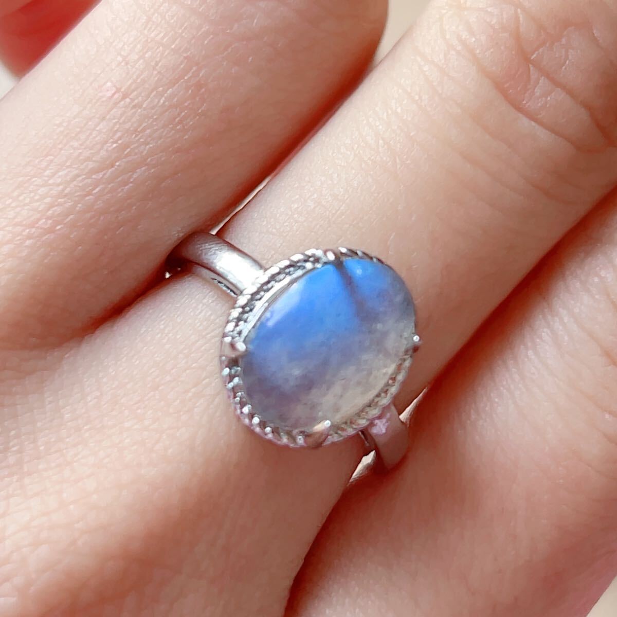 - ◇グレームーンストーン◇シラー強め◇指輪◇リング◇フリーサイズ◇天然石◇パワーストーン◇巾着袋付き◇プレゼントにも 028R121512
