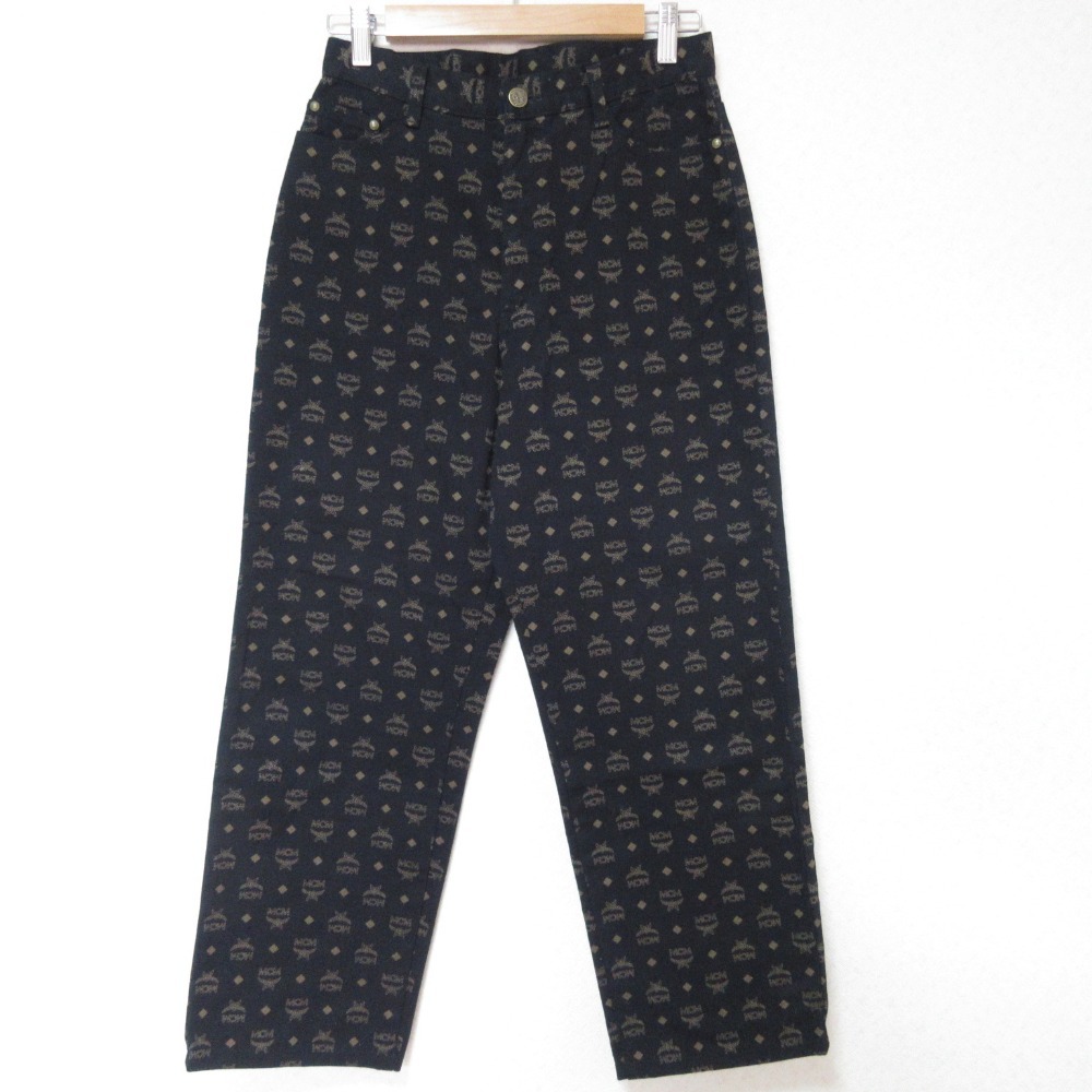> 美品 MCM OTC エムシーエムオーバーザカウンター ヴィンテージ ロゴプリント 総柄 テーパードパンツ 70-95 ブラック