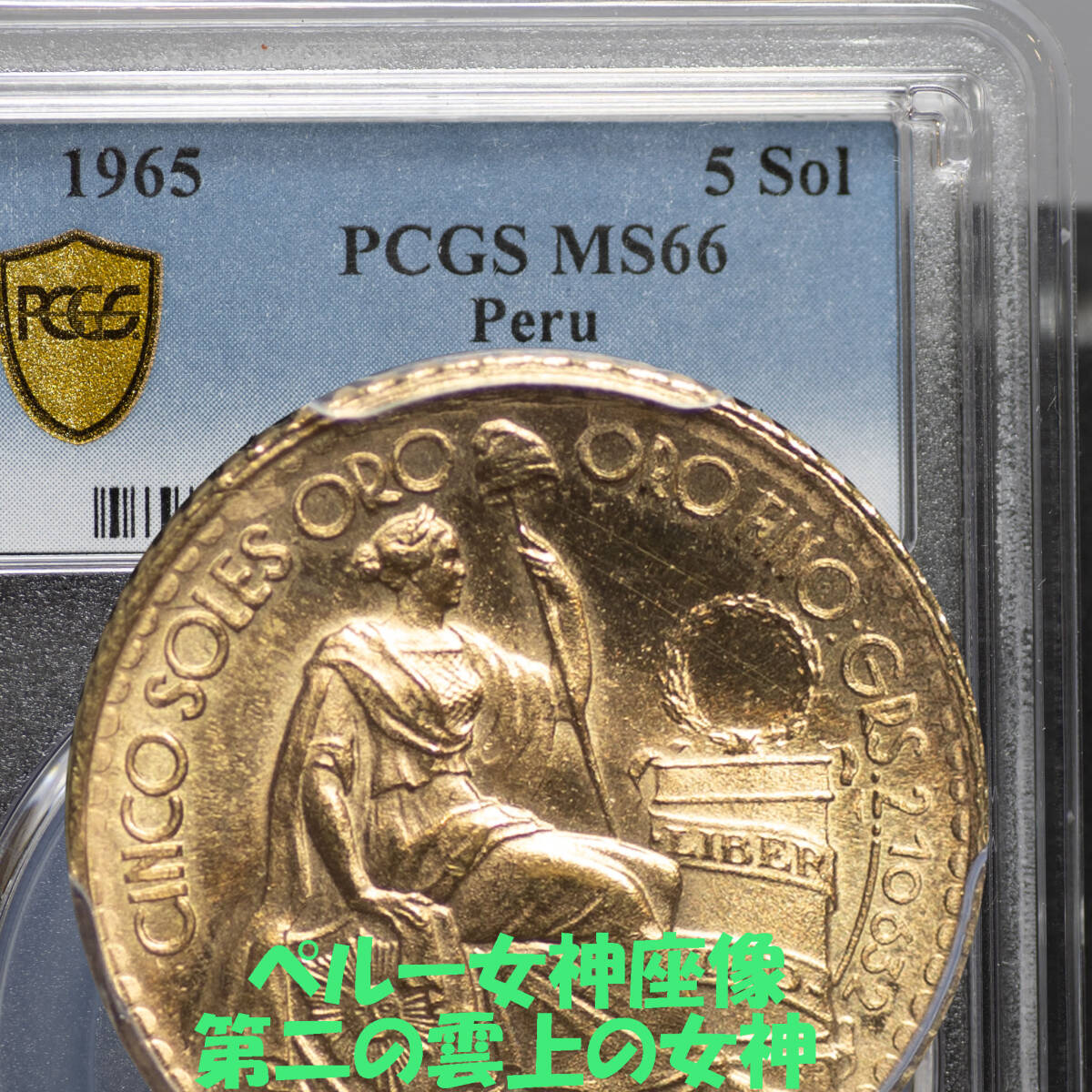 > 【奇跡の逸品 希少 MS66】ペルー 女神の座像 1965年 5ソル 金貨 PCGS 第二の雲上の女神 女神座像 自由の女神 シーテッドリバティ送料無料