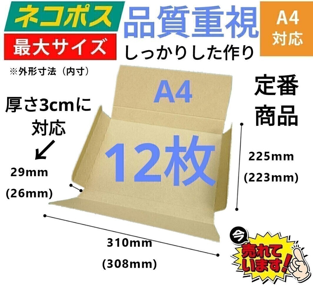 - ネコポス発送に最適なA4ダンボール箱 厚さ3cmに対応!12枚セット