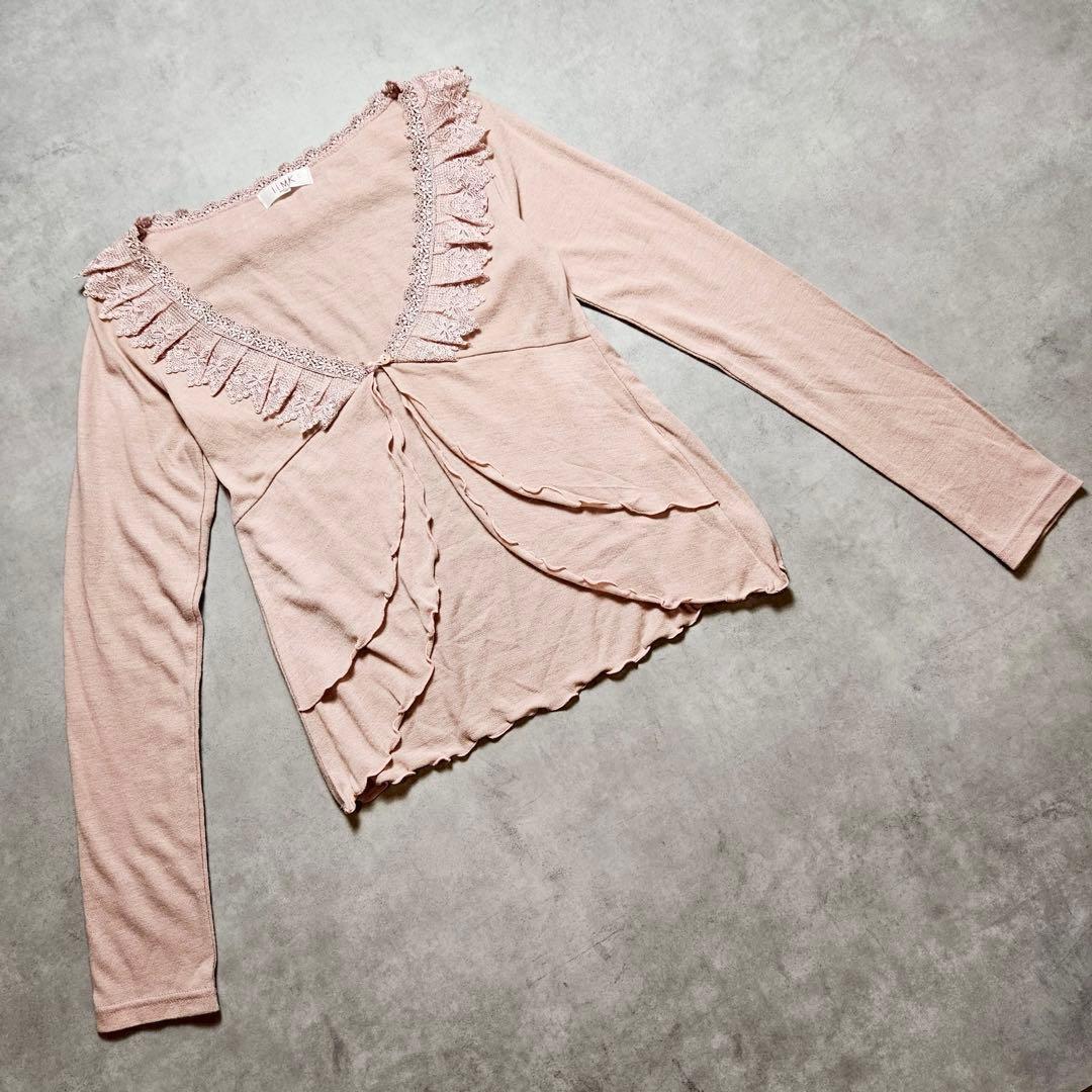 - h983H iiMK ミッシェルクラン フリルレースカーディガン ピンク 38 699E85