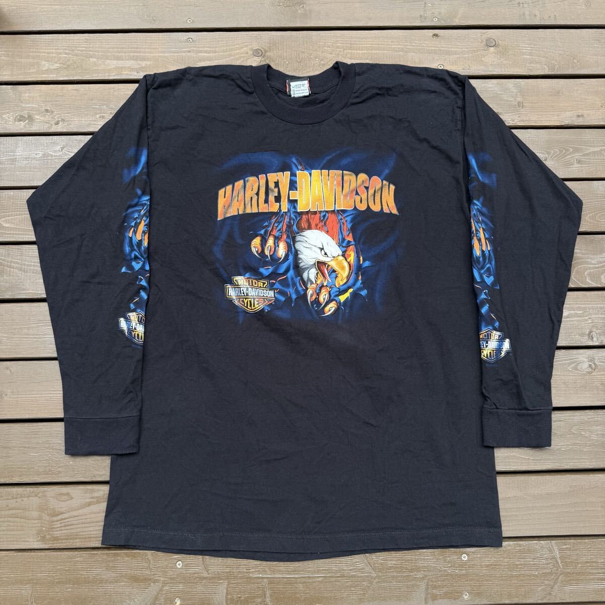 > 00s USA製 Hraley Davidson Long Sleeves T-Shirt ハーレーT ロンT 黒 イーグル 両面両袖 XL 状態良好 検 90s 80s 70s ヴィンテージTシャツ