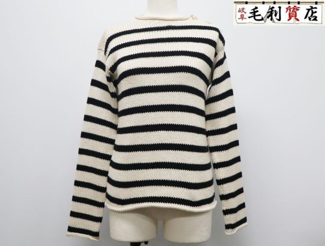 > クリスチャンディオール Christian Dior コットン カシミヤ ニット 054S22AM714 サイズ34 ボーダー CDボタン 【中古