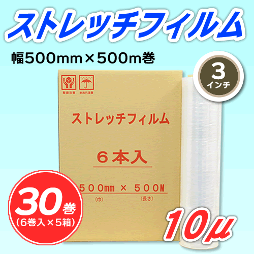 - 【30巻】ストレッチフィルム 幅500mm×500m巻 10μ 3インチ紙管(代引不可)※法人様限定