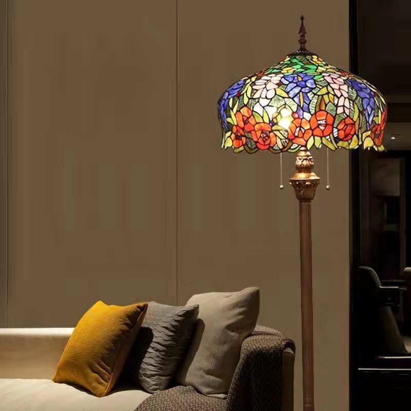 - 人気美品★ 【ステンドランプ ステンドグラス アンティーク 花柄】レトロな雰囲気がおしゃれ★ ティファニー技法 照明 フロアスタンド