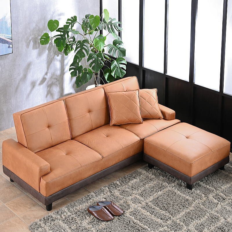 レザー風ファブリック張りリクライニングソファーベッド スツール付きCAM色