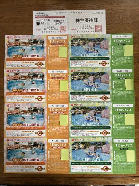 - ★東京都競馬 株主優待 東京サマーランド 招待券 1Dayパス 8枚セット + 大井競馬場 株主優待証
