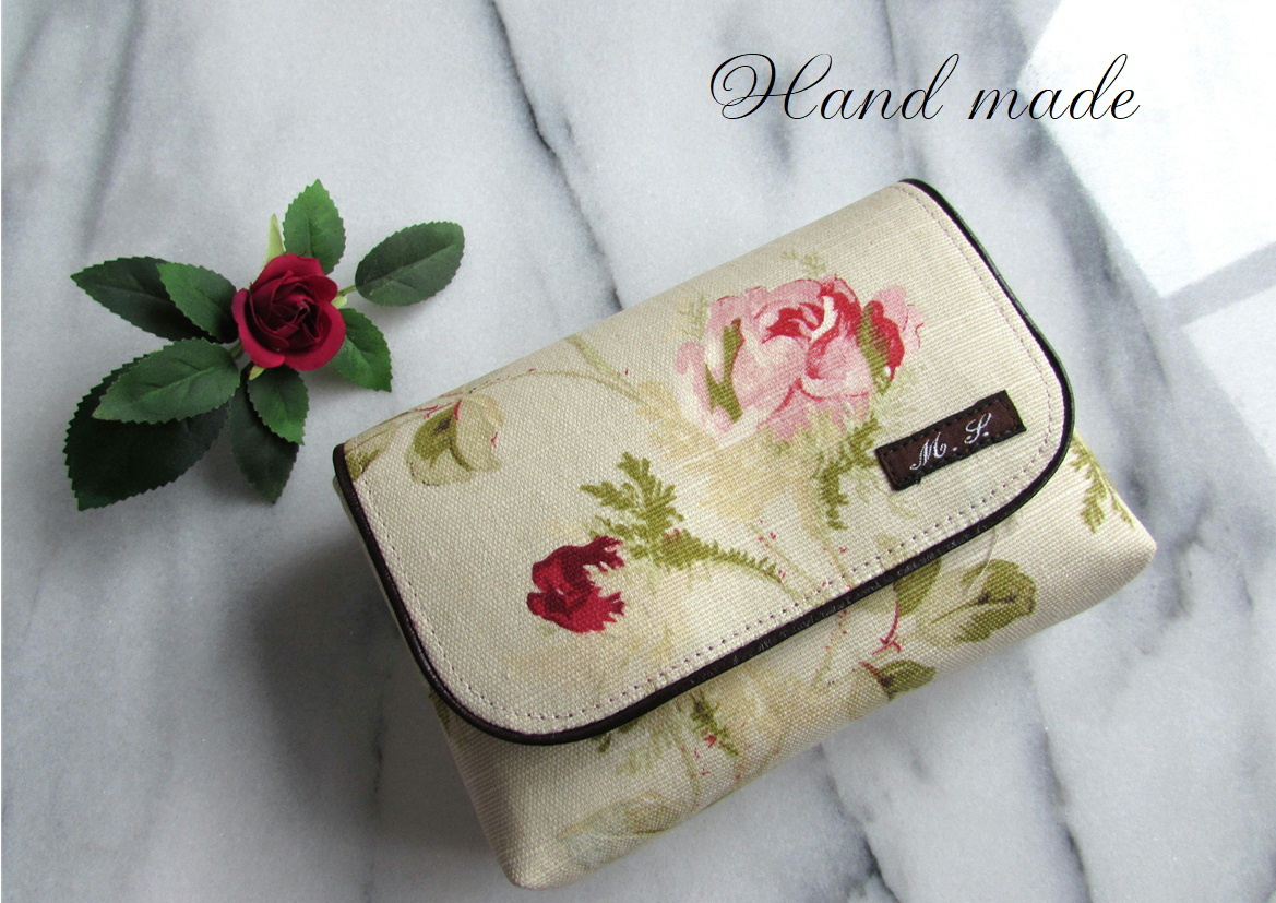 - **ハンドメイド** 通帳ポーチ 小物入れ イギリスファブリック 薔薇