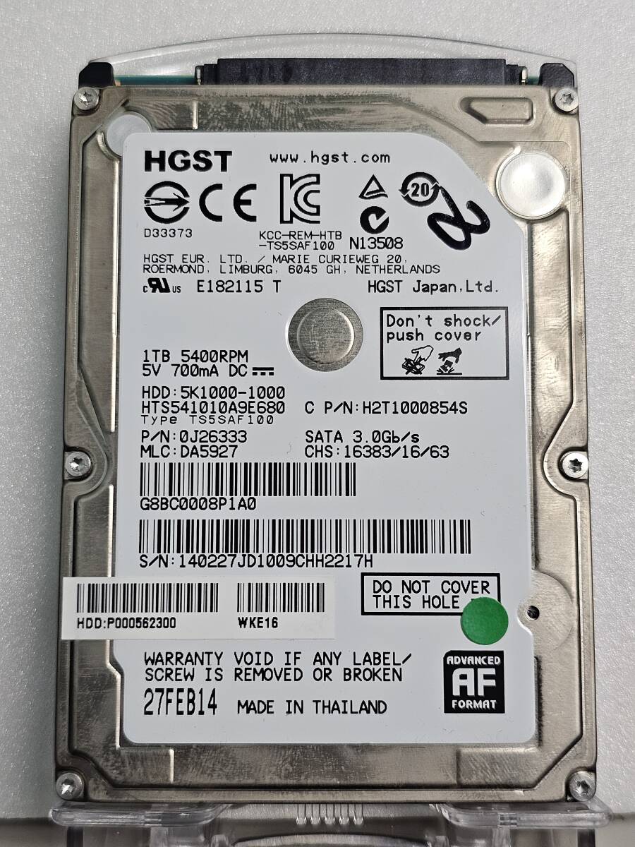 - 正常品 HGST 1TB(1000GB) 2.5インチ HDD S03331-6