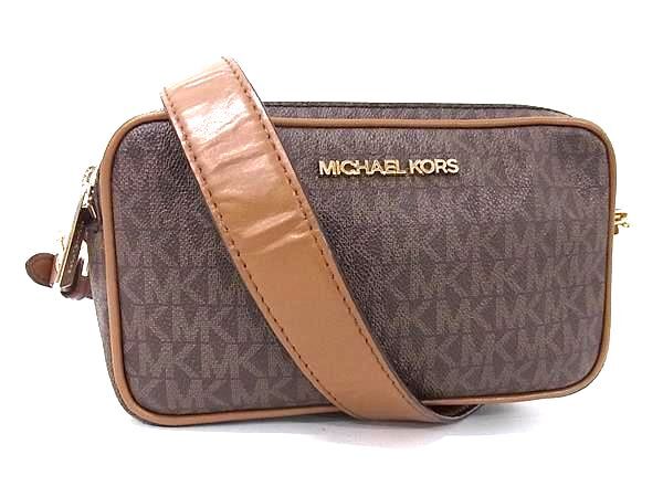 > 1円 MICHAEL KORS マイケルコース MK柄 レザー クロスボディ ショルダーバッグ 肩掛け レディース ブラウン系 FY1501