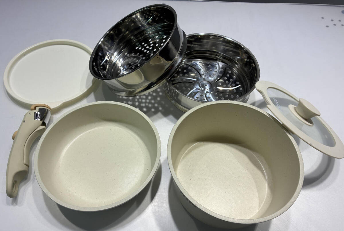 - フライパンセット 20cm 7点 取っ手が取れる IH・ガス火対応 ソースパン 鍋 蓋付き 軽量 passo-set7