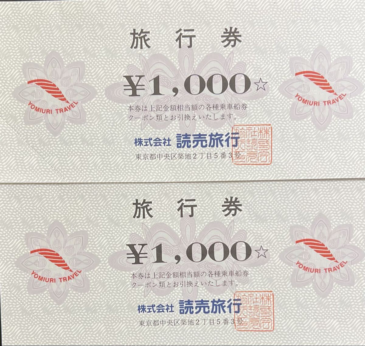 - 読売旅行 旅行券1000×2