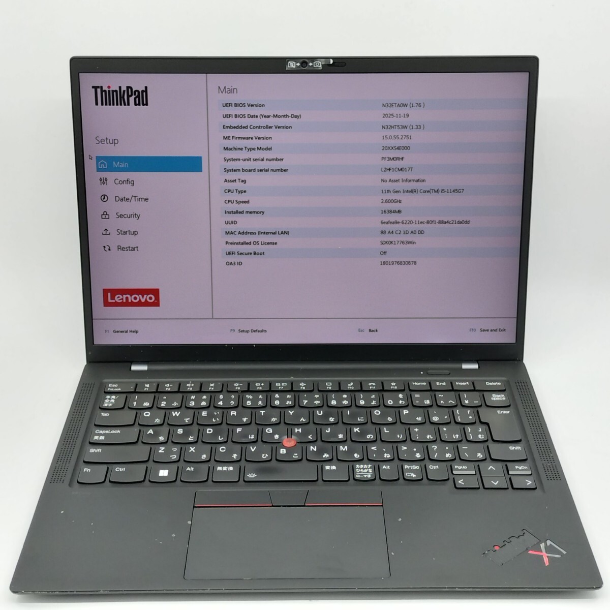 - 管理:NW-11557(219353)/Lenovo ThinkPad X1 CARBON GEN9/i5-1145G7/SSDなし/DDR16GB/OSなし/ジャンク品