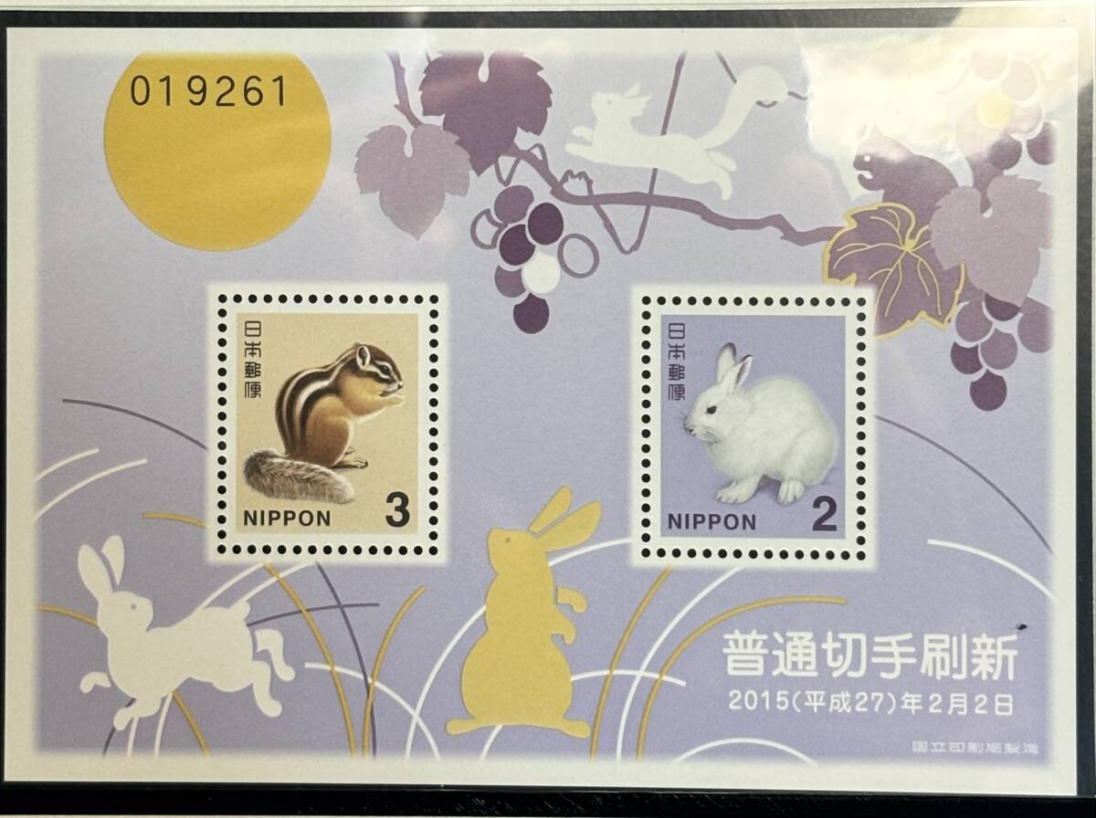 - エゾユキウサギ シマリス 2015年2月2日発行【普通切手帳】の限定特別小型シート シリアルナンバー付き 未使用 極美品 まとめて取引可