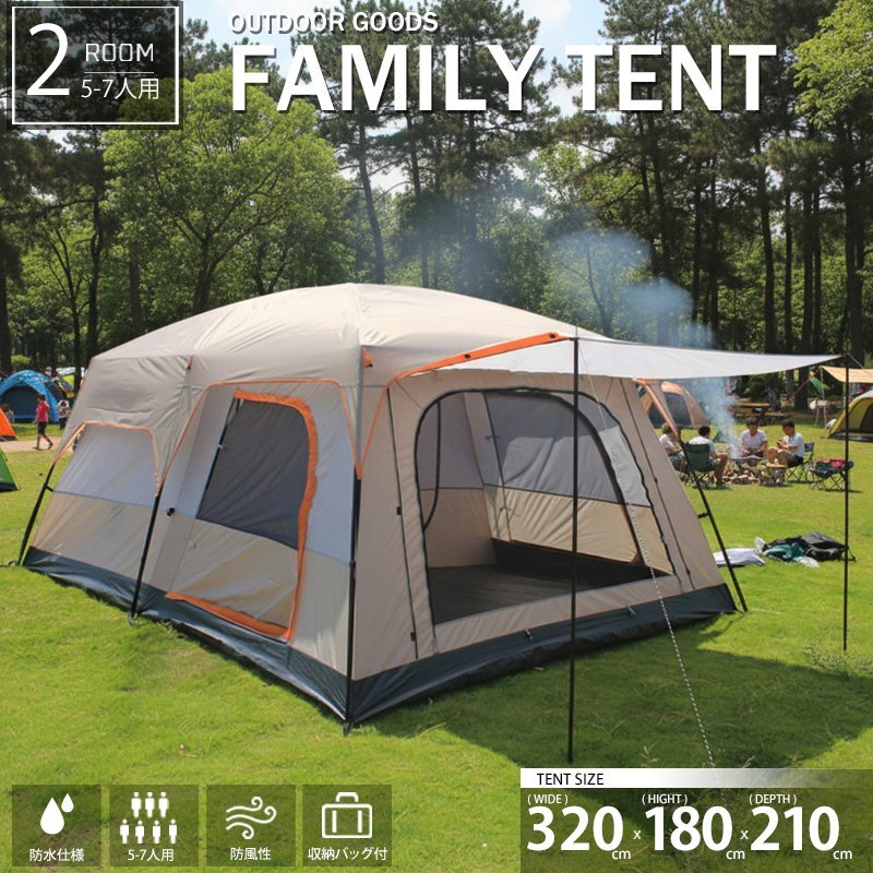 - 1円 ドームテント ファミリーテント 2ルームテント ファミリー 5-7人用 アウトドア 就寝スペース2ルーム+リビング 付 キャンプ TN-46BJ