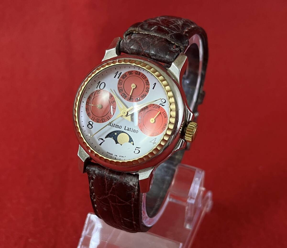 > ☆3) Ritmo Latino リトモラティーノ ムーン&スター ドームガラス トリプルカレンダー 腕時計 クォーツ ホワイト文字盤 イタリア製 ★