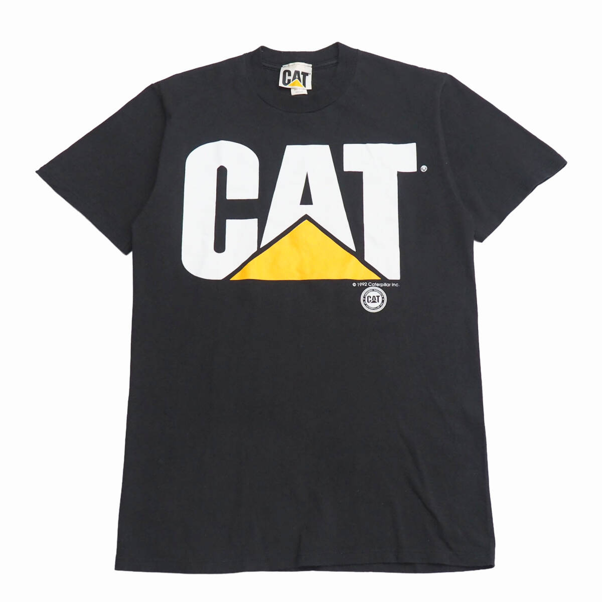 - TK0744+USA製*90s*ヴィンテージ*CAT/キャタピラー/CATERPILLAR*メンズMEDIUM*ロゴプリントTシャツ*半袖カットソー*ブラック系