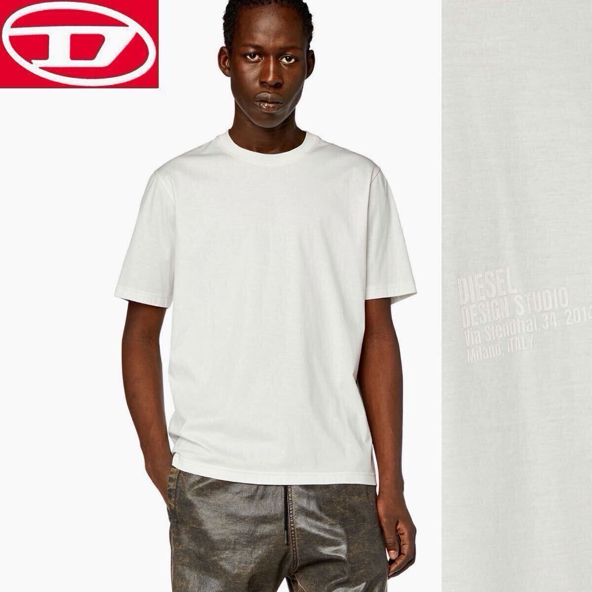 > 【新品タグ付 M相当】DIESEL Tシャツ ロゴ ホワイト 定価18,700円 メンズ シルケット加工 同色プリント 半袖 17