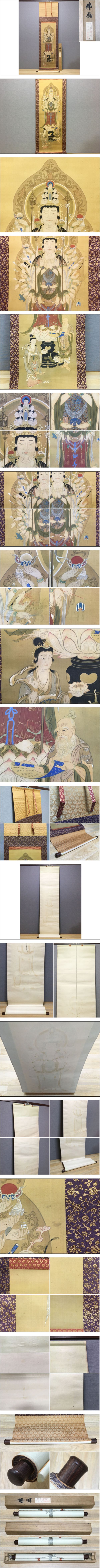 > 掛軸 佛画 千手観音 作者不明 約210×51.5cm 仏像 仏画 菩薩像 仏教 寺院 絵画 日本画 古美術 仏教美術 美術品 箱付 K-4