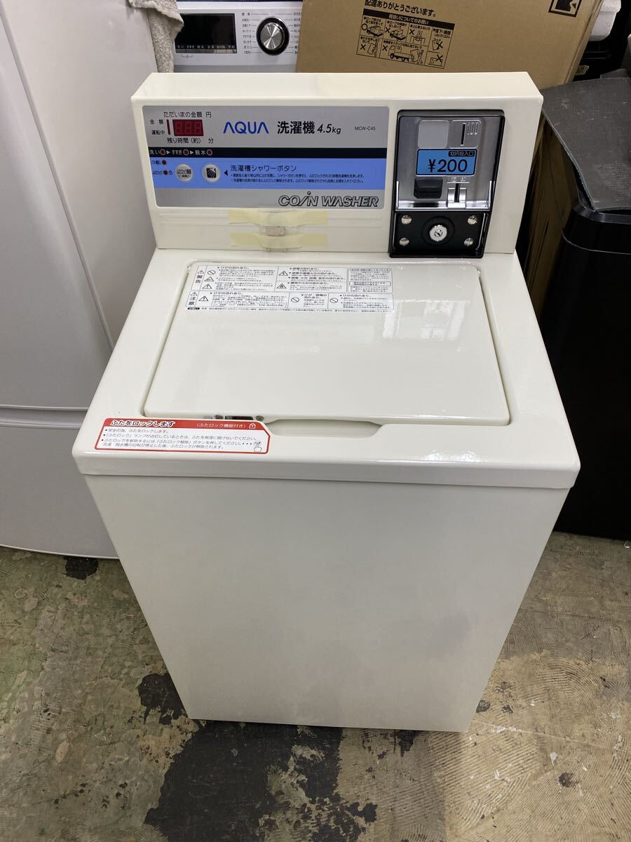 - kj2409 展示品 AQUA アクア コイン式洗濯機 業務用 洗濯機 鍵付き MCW-C45 通電動作確認済み