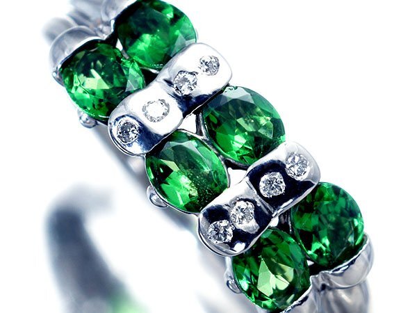 > 1円~【ジュエリー極】鮮やかグリーン!良質天然グリーンガーネット1.10ct&天然ダイヤモンド0.06ct 高級Pt900リング a3531kk【送料無料】