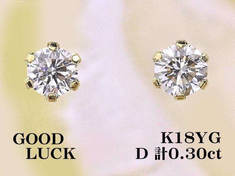 > 【新品・未使用】1円~最落無 天然ダイヤモンド 計0.30ct,K18YG シンプルデザイン 6本爪セッティング ダイヤモンド スタッドピアス