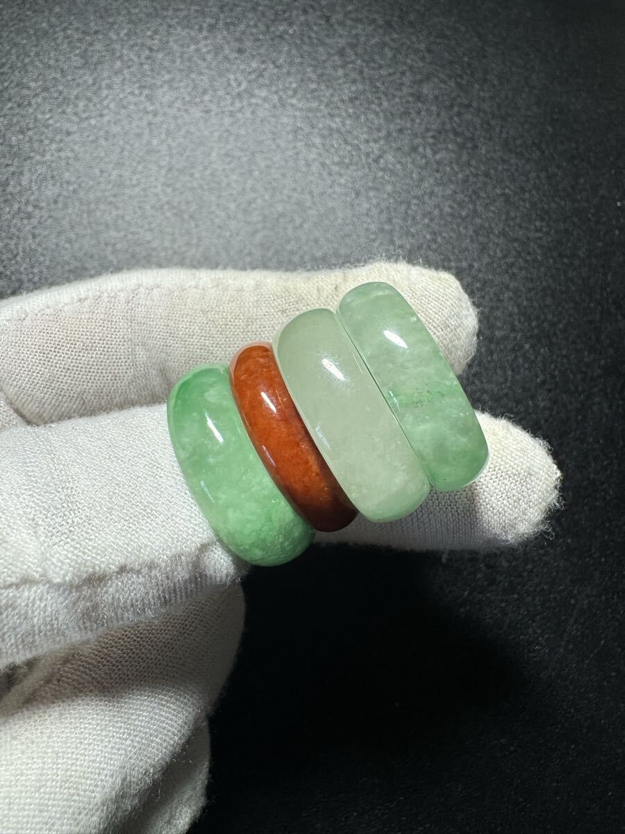 - 天然翡翠 リング 4点セット グリーンジェイド 指輪 まとめ 中国美術 天然石
