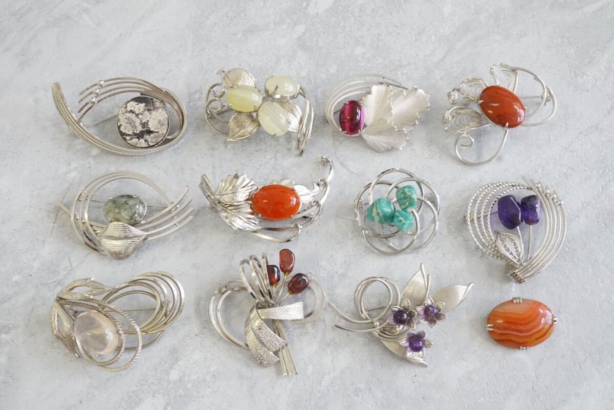 - C722 全て天然石 カラーストーン ブローチ 12点セット ヴィンテージ アクセサリー 大量 まとめて おまとめ まとめ売り