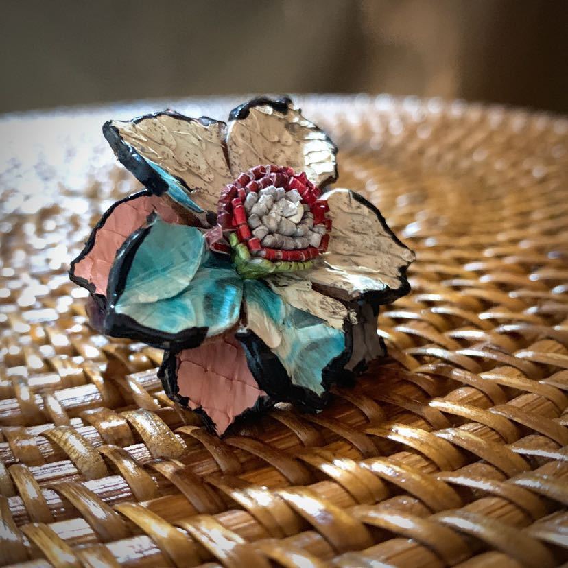 > 【送料無料】【ハンドメイド】本革 お花 リング*フリーサイズ 10~28号*パステルカラー*プレゼントにも* ST_L1⑨ 指輪 レザー