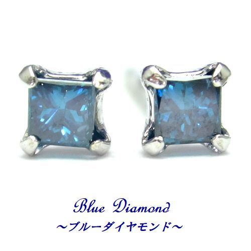 > K10WG ブルーダイヤモンド 2mm スクエア プリンセスカット 計0.10ct スタッドピアス ジュエリー トリートメント 4月誕生石 箱付き