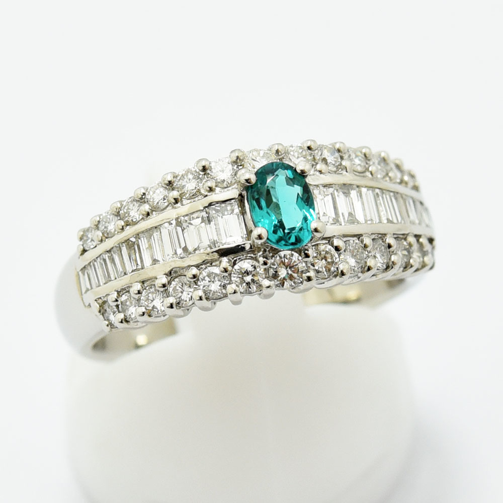 > パライバトルマリン 0.27 ダイヤモンド 0.91 リング ブラジル産 PT900 約14号 新品磨き仕上げ 中古