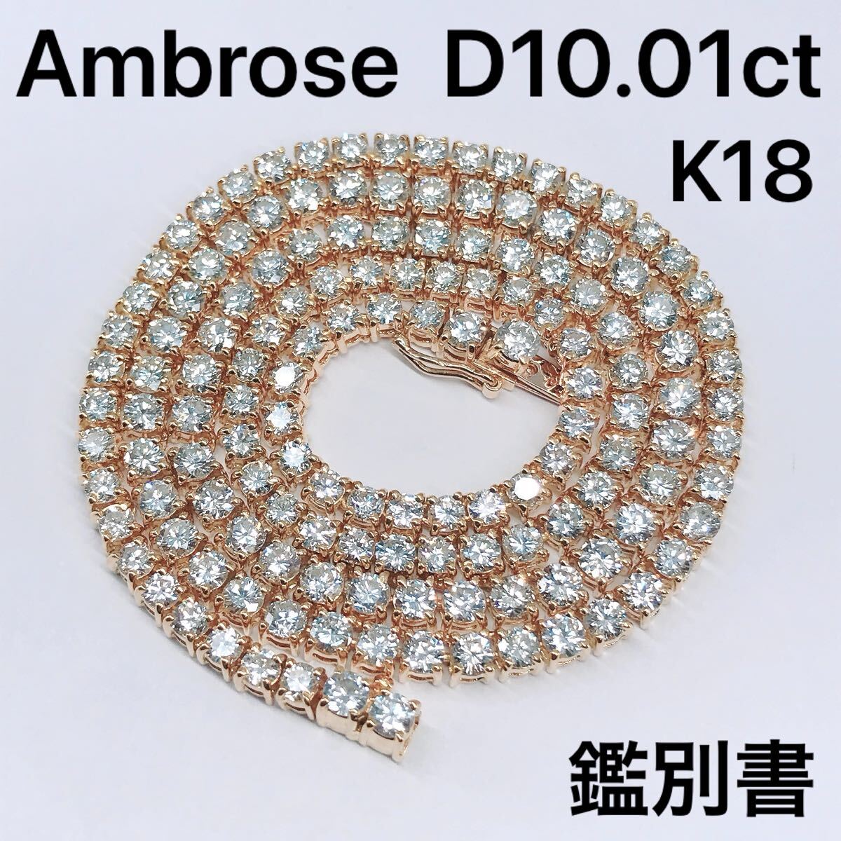 > 10.01ct アンブローズ ダイヤモンド テニスネックレス K18 10ct Ambrose 鑑別書付き 4本爪