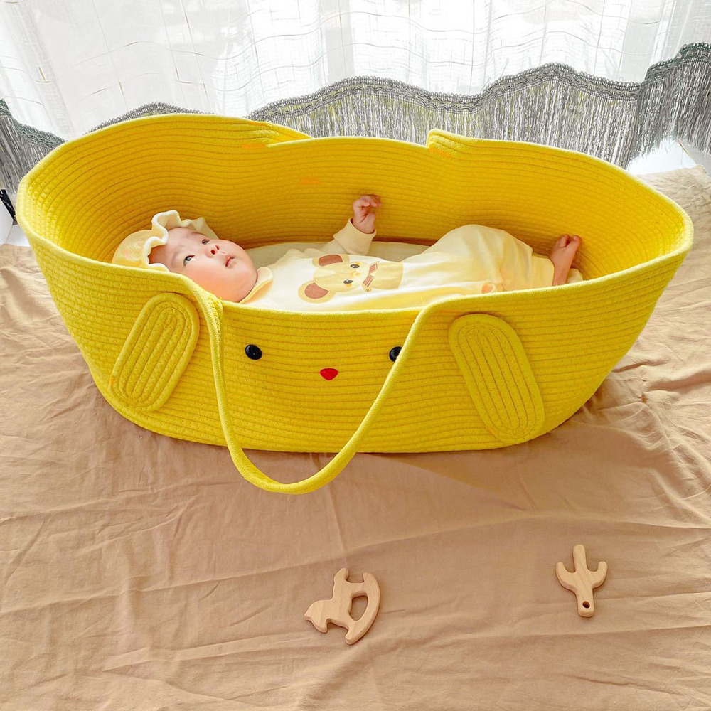 - ☆ イエロー ☆ ベビーバスケット 敷きマット付き クーファン かご クーハン マット付き ベビークーファン ベビークーハン ベビーベッド