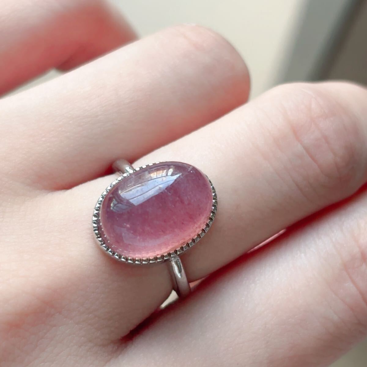> ♪苺水晶(ストロベリークォーツ♪指輪♪リング♪フリーサイズ♪天然石♪パワーストーン♪巾着袋付き♪プレゼントにもR357271