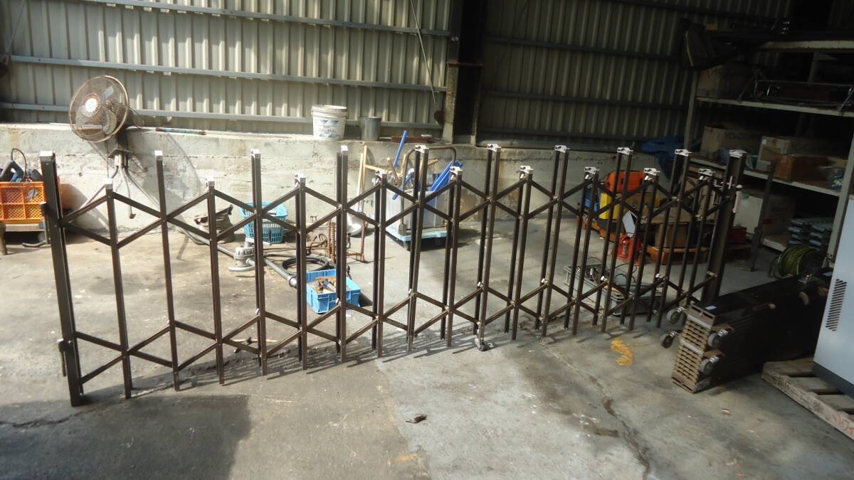 > 油谷 №2082 アコーディオン門扉 アルミ伸縮門扉 ジャバラ門扉 スライドゲート 進入路ゲート スライド門扉中古 資材置き場 エクステリア