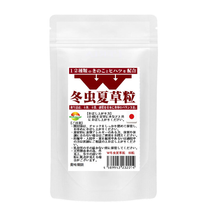 - W冬虫夏草粒 60粒 1日4粒で約15日分 コルジセピン高含有の冬虫夏草に12種のきのこ+ヒハツ配合