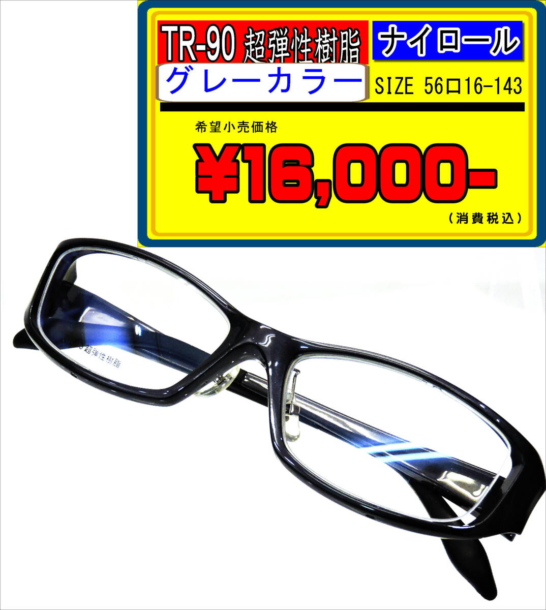 > 新品未使用 長期保管品 フレーム グレー サイズ56口16-143/O-005/ TR-90 超弾性樹脂 サイドナイロール調整可能 鼻パット付 現品限り