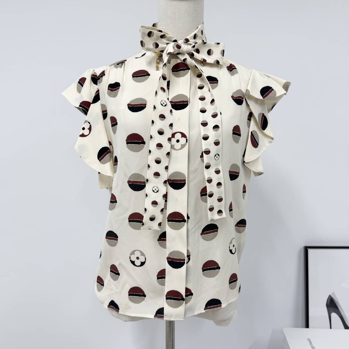 - M13958 ヴィトン シルク ボウタイ ブラウス トップス ノースリーブ アイボリー