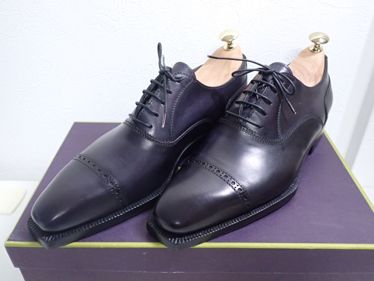 - N654/8P〇ステファノビ STEFANO BI クォーターブローグ レザーシューズ 革靴 ブラック 黒 サイズ7 中古品〇