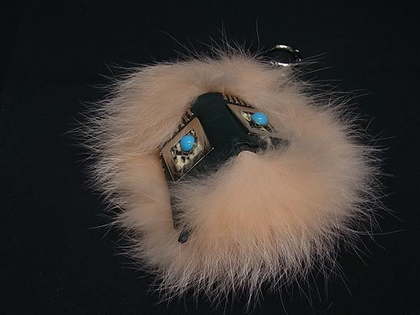 - 1円 ■美品■ FENDI フェンディ モンスター バッグバグズ ファー×レザー ポーチ バッグチャーム キーホルダー サーモンピンク系 FX3726