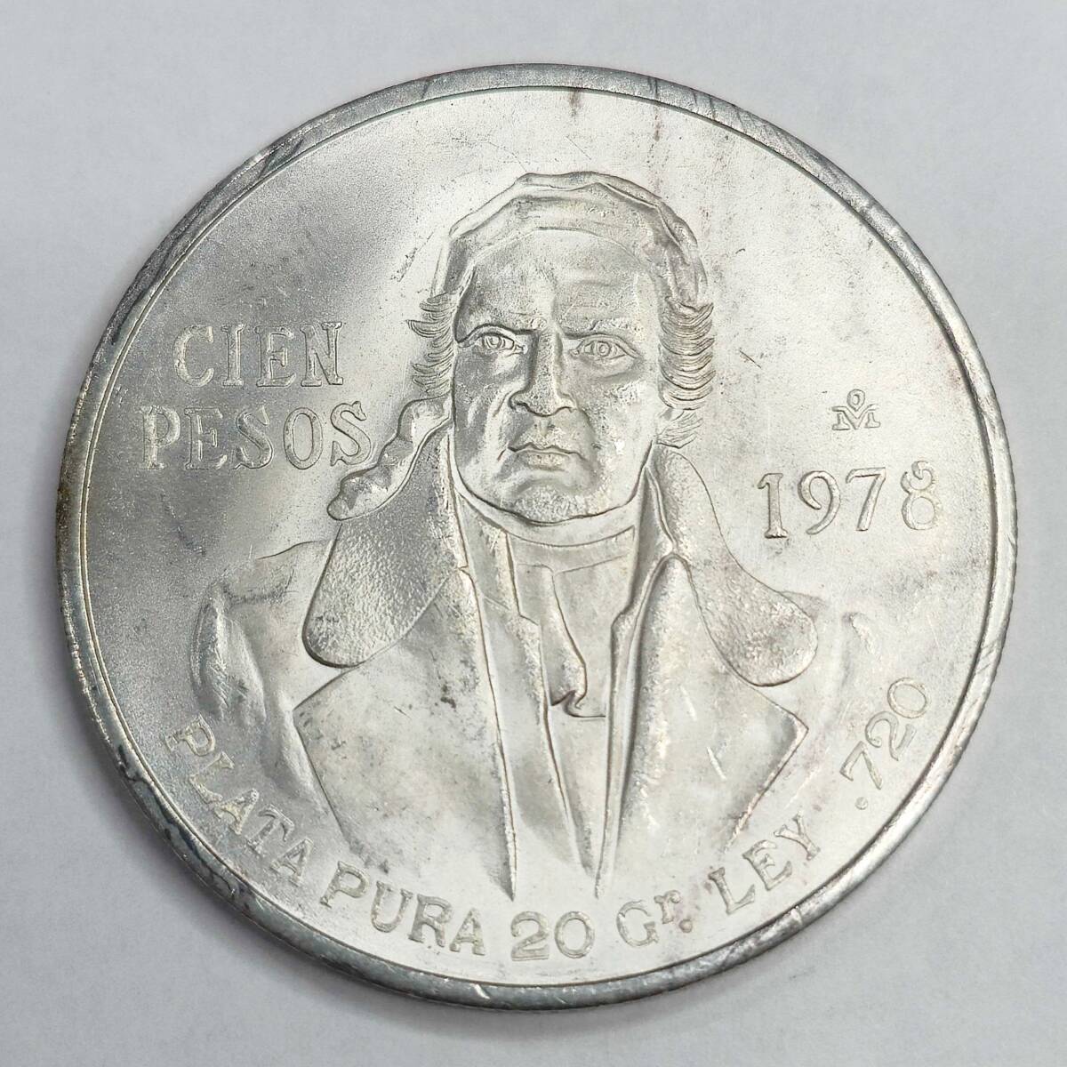 - 【5375】メキシコ 1978年 ホセ・マリア・モレーロス 100ペソ 銀貨 CIEN PESOS アンティーク コレクション★
