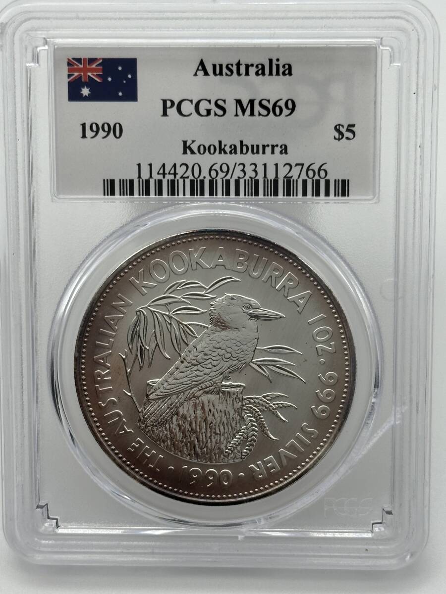 - 【最高鑑定】1990年 オーストラリア 銀貨 PCGS MS69 クッカバラ ワライカワセミ 1オンス 5ドル