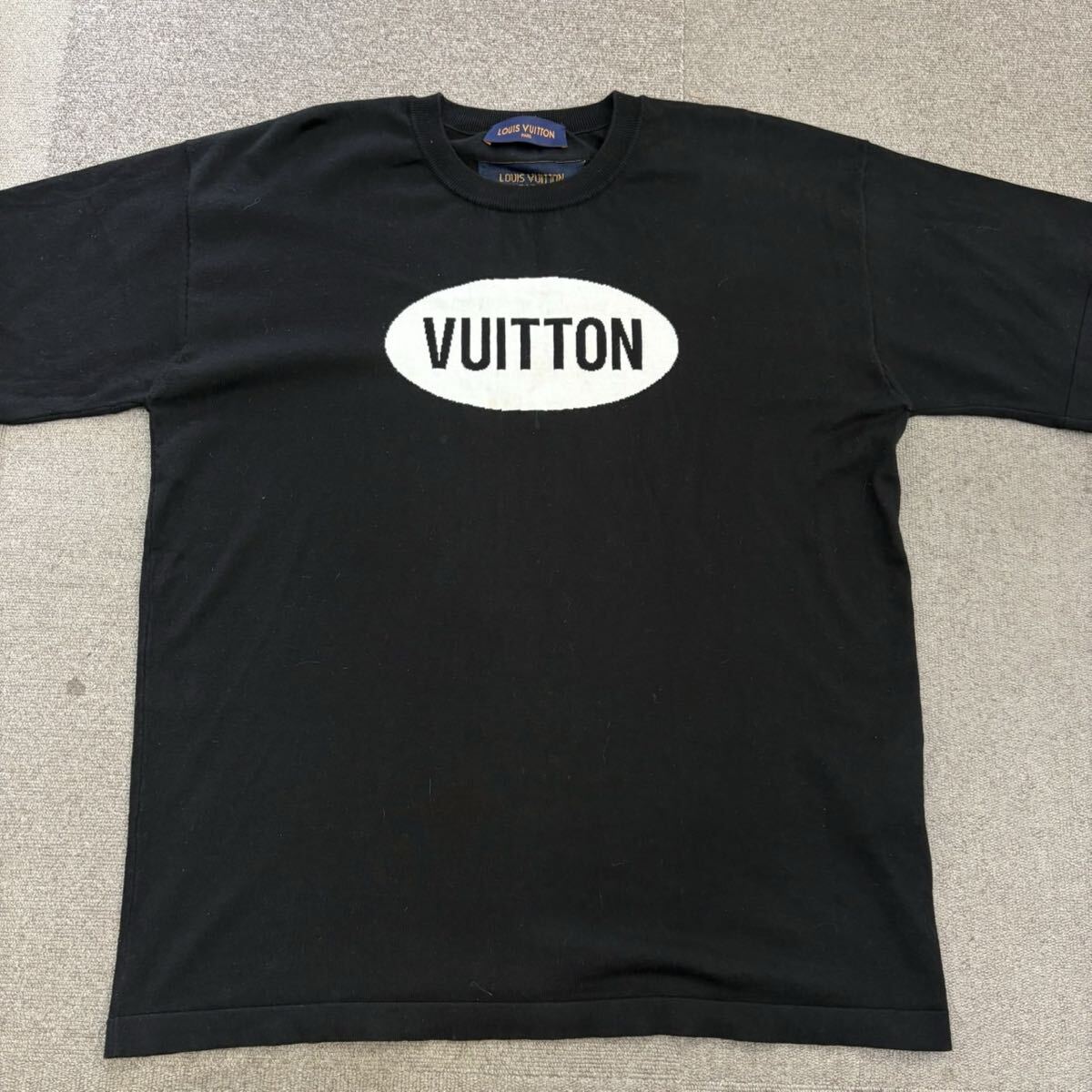 - 3『極美品・現行タグ』 LOUIS VUITTON コットン インタルシア ニット織 ビッグロゴ ジャガードロゴ 半袖 Tシャツ ブラック Mサイズ