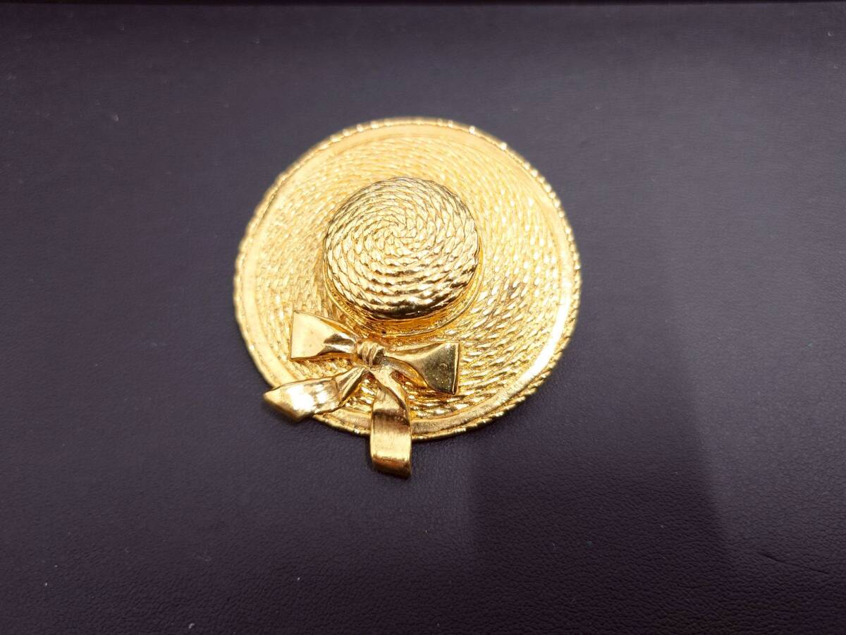 - 1円~ CHANEL シャネル ブローチ 麦わら帽子 リボン ゴールド ヴィンテージ